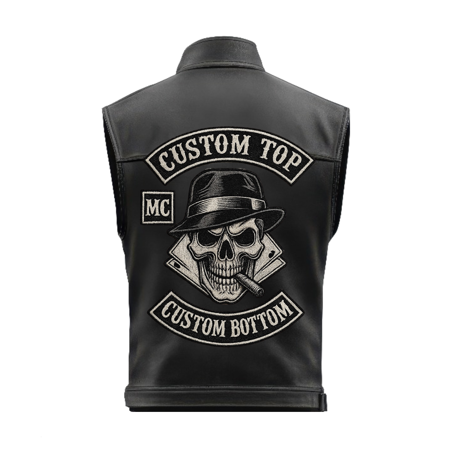 Cigar Skull Emblem Custom Leather Biker Vest