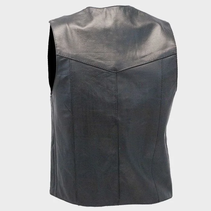Classic Black Leather Motorcycle Vest
