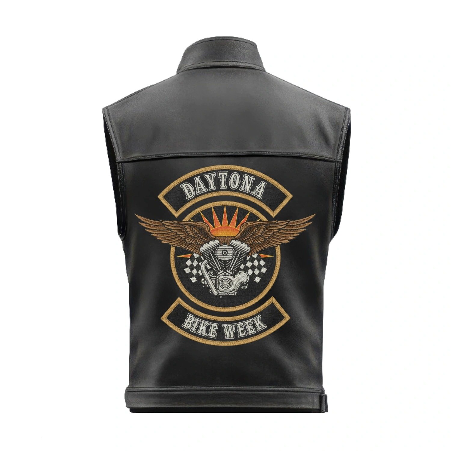 Daytona Bike Week Leather Biker Vest with Winged Engine Embroidered Patch