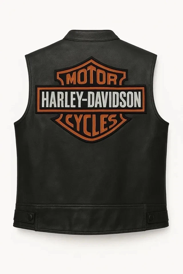 The Harley-Davidson Bar and Shield leather vest is built for riders who want unmistakable Harley identity and dependable comfort on every ride. Crafted from premium black leather, this men’s motorcycle vest brings together iconic style and practical design. The front features a clean embroidered HD logo, giving it that authentic Harley-Davidson leather vest feel, while still keeping the look sharp for riders who want a true bar and shield biker vest experience.