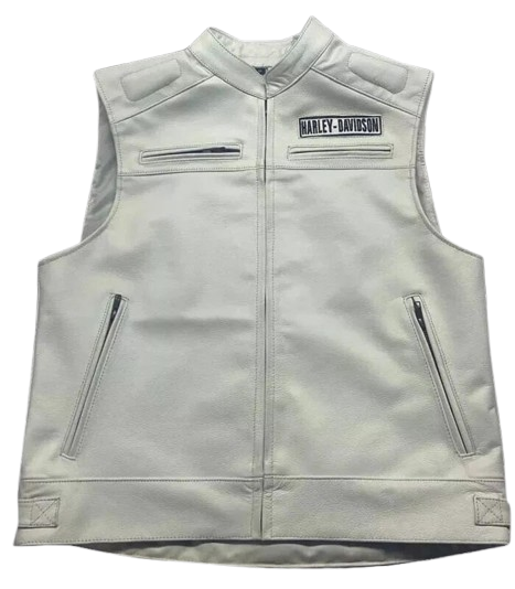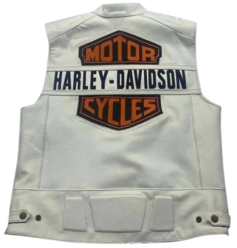 The Harley-Davidson white leather biker vest delivers a clean, iconic riding look designed for riders who want standout style with authentic Harley attitude. Crafted from premium white leather, this vest combines durability with a crisp, modern edge. The front proudly features an embroidered HD patch, keeping things classic while naturally weaving in key elements like the white Harley-Davidson leather vest and white motorcycle club vest identity. With its smooth finish and easy feel, it’s a go-to choice for any rider looking to elevate their setup.