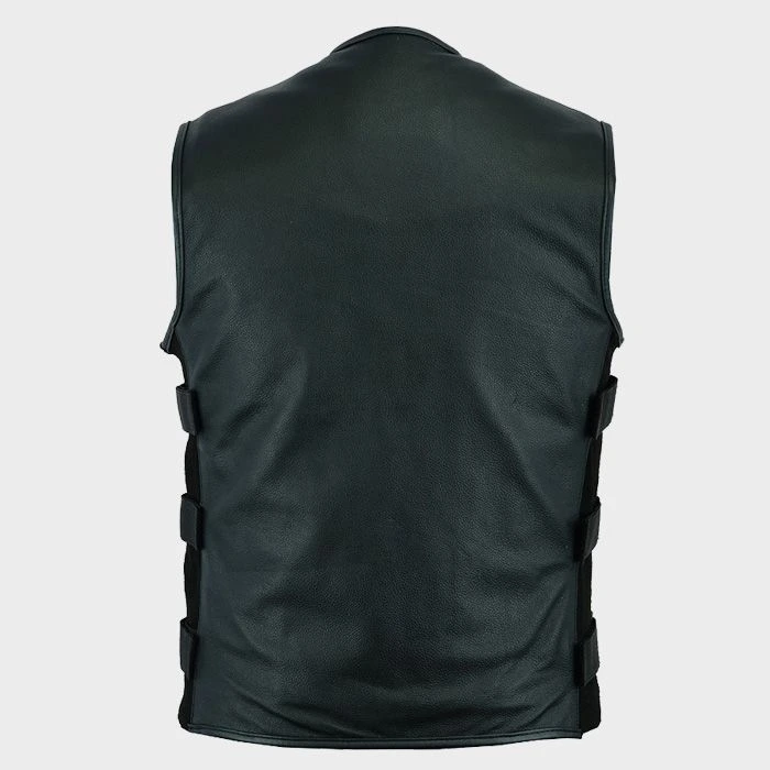 Tactical Black Leather Biker Vest